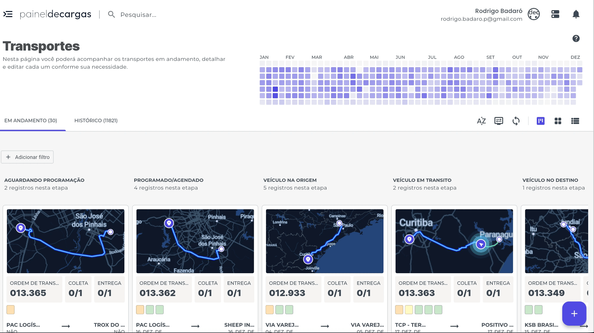 "Com o Painel de Cargas, ganhamos visibilidade em tempo real e controle total da operação. A previsibilidade das entregas melhorou significativamente."